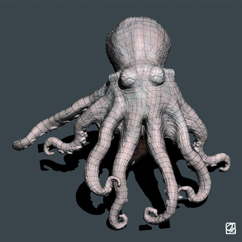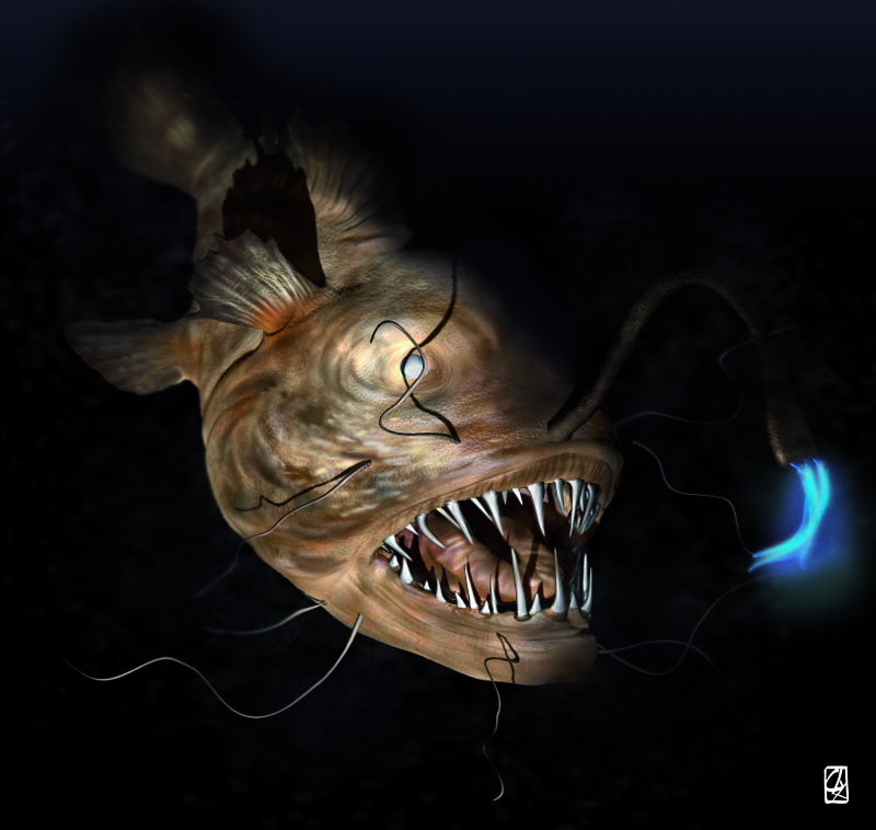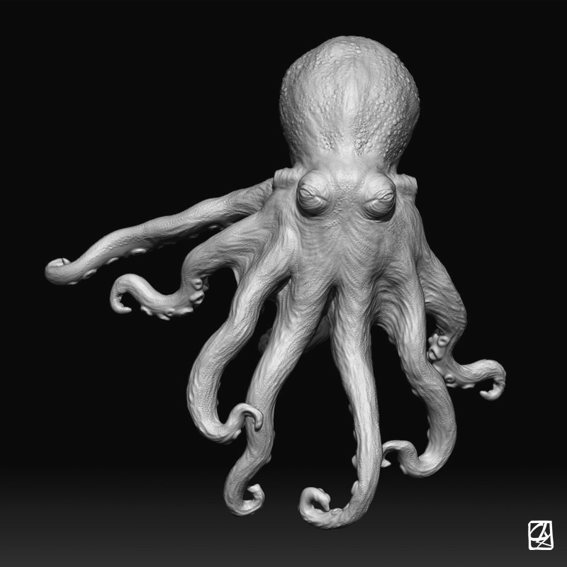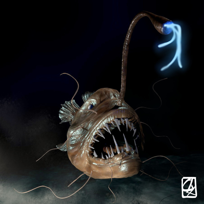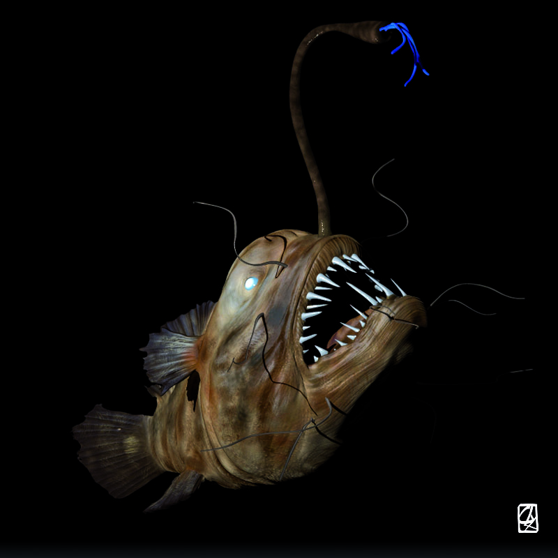 3D interpretation of a monkfish and octopus according to pictures.